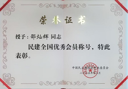 今年是中国民主建国会成立80周年,为表彰先进、树立榜样、弘扬优良传统,激发奋进力量,民建中央决定对民建十一大以来,涌现出的一大批热爱民建、勇于创新、甘于奉献、事迹突出的600位先进个人和310个组织集体给予表彰,其中惠州民建会员邵灿辉获民建全国优秀会员。