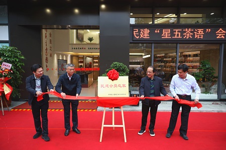 活动中,欧壮喆、刘辉、王浩然、陈盛江共同为“星五茶语”民建会员之家揭牌。陈盛江向大家仔细介绍“星五茶语”民建会员之家的功能定位,筹备和建设情况。到场嘉宾实地参观了民建会员之家的学习研讨区、互动交流区、资料展示区及历史文化墙和智慧学习平台。