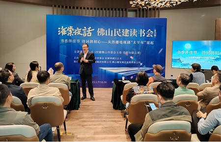 3月8日,民建佛山市委会举办第28期海棠夜话读书会。市委会主委张兵作主题为“书香伴佳节 诗词润初心——从热播电视剧《太平年》说起”的学习辅导。市委会副主委林荣、秘书长张英强,禅城区总支副主委杨钦、张青云、邓志英等40余位会员参加学习。