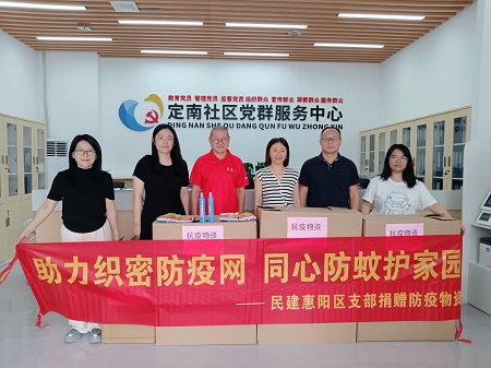 近日,民建惠州惠阳区支部积极响应区蚊媒传染病疫情防控部署,组织支部支委、骨干会员前往淡水街道定南社区党群服务中心,现场捐赠一批防疫物资,助力社区有效控制蚊媒传染病流行风险,筑牢基层健康防线。