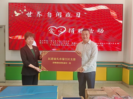 近年来,民建濠江区支部积极响应市委会打造“尊老爱幼助残”社会服务品牌的号召,与区残疾人康复中心签订了帮扶服务协议。在第19个“世界孤独症关注日”来临之际,支部积极筹集一批感统训练器材,捐赠给区残疾人康复中心,并发动会员企业濠江区新圣创伤骨科医院、广东腾翔律师事务所和广东源泽建设发展有限公司,为本次爱心活动送医送药、提供法律咨询及物资捐赠。